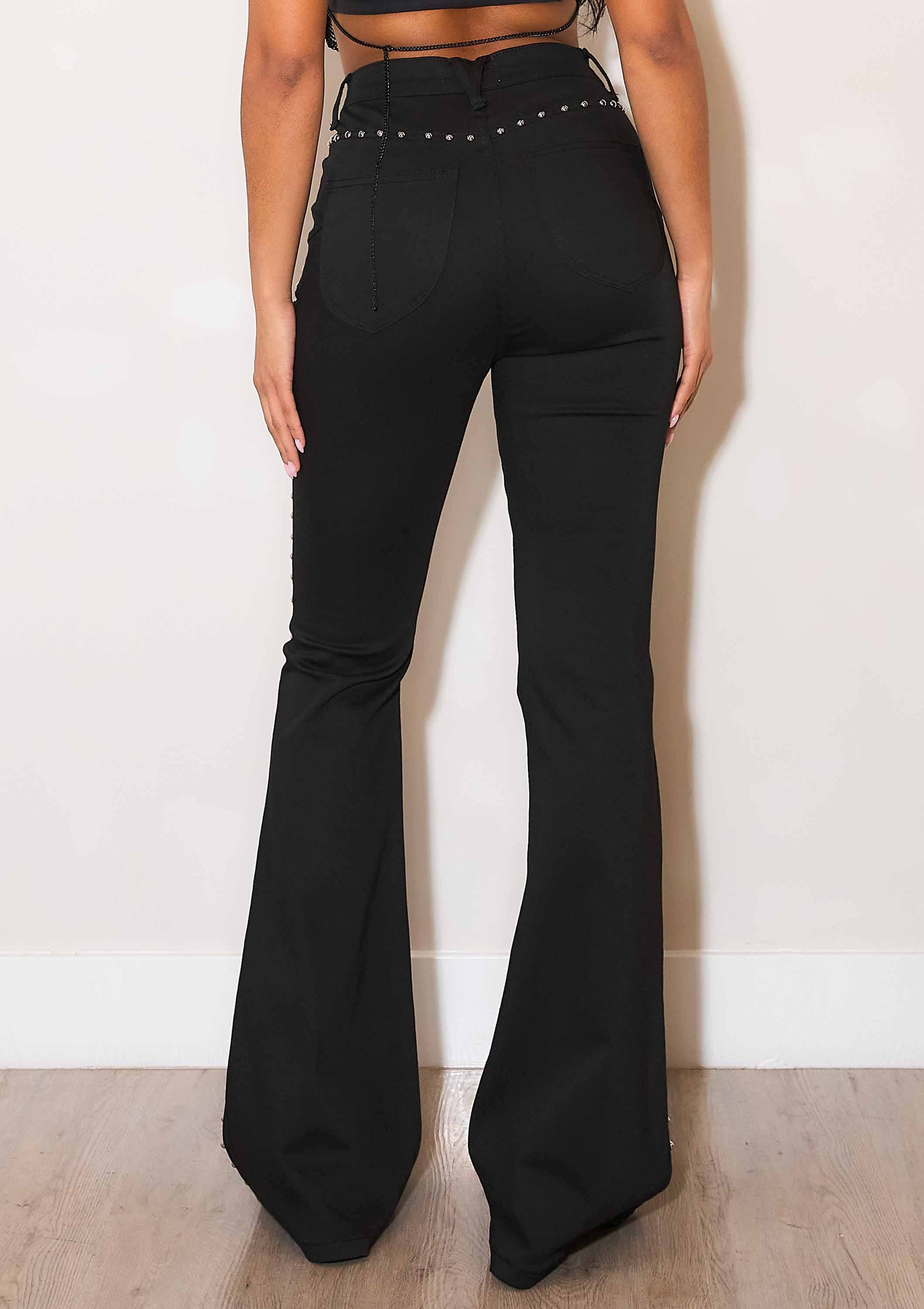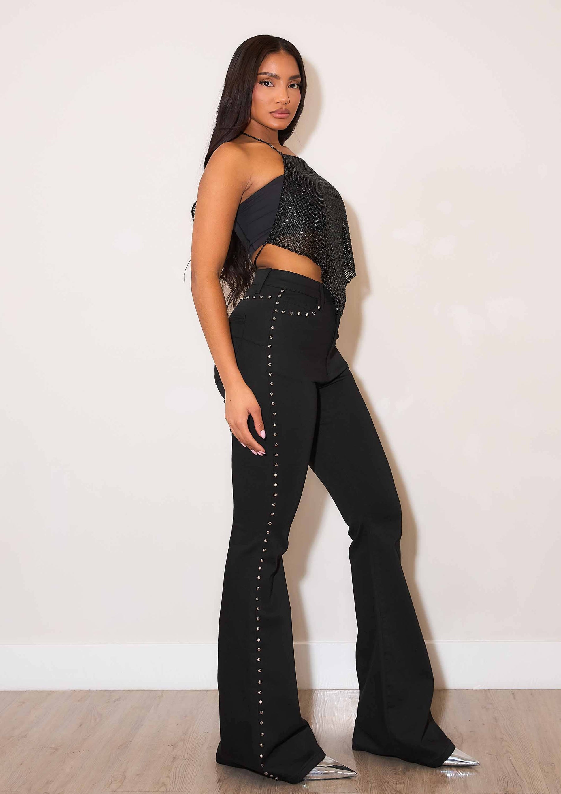A pair of flare jeans featuring stud detail, classic 5-pocket construction and a zip-fly closure.