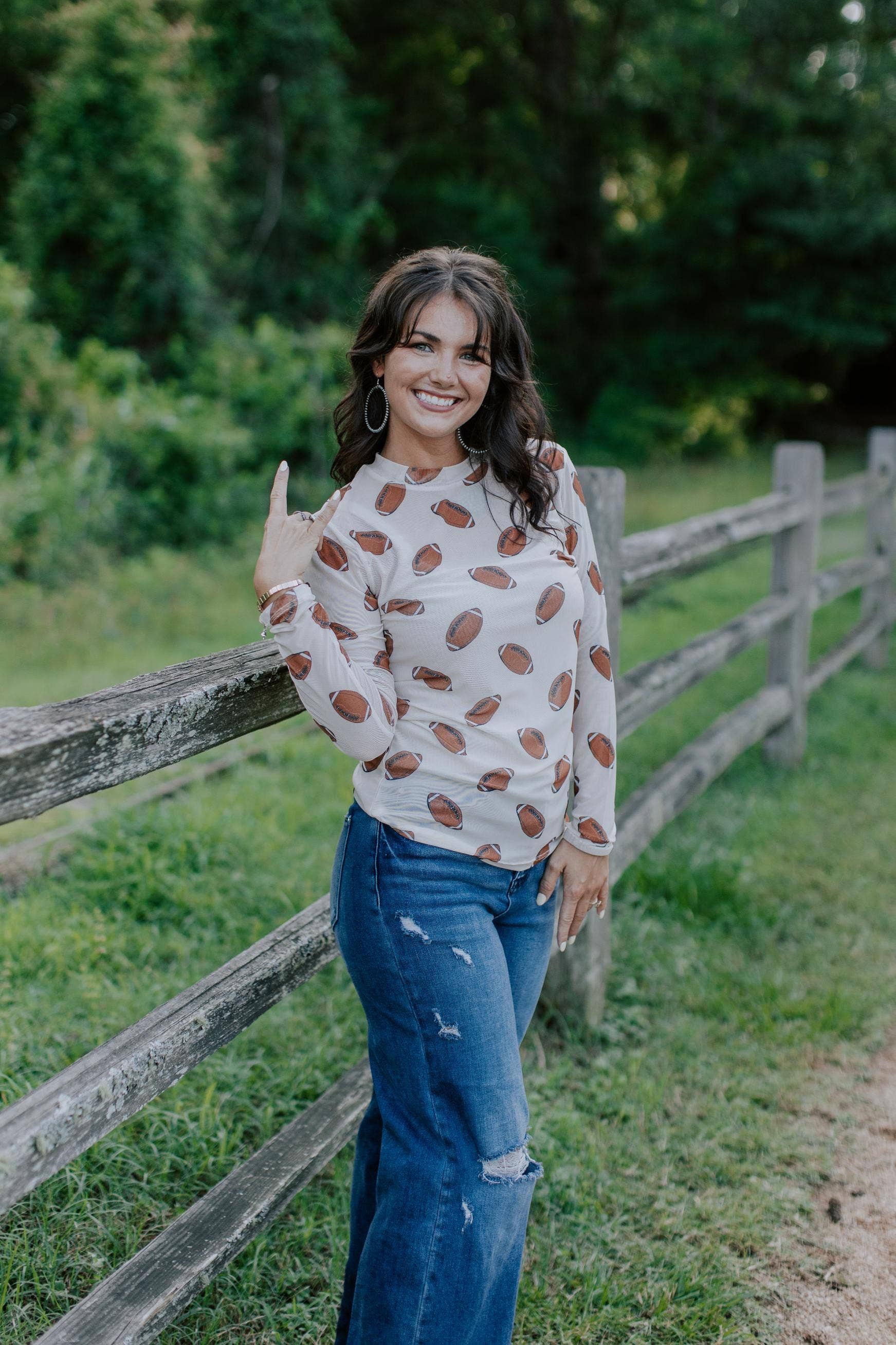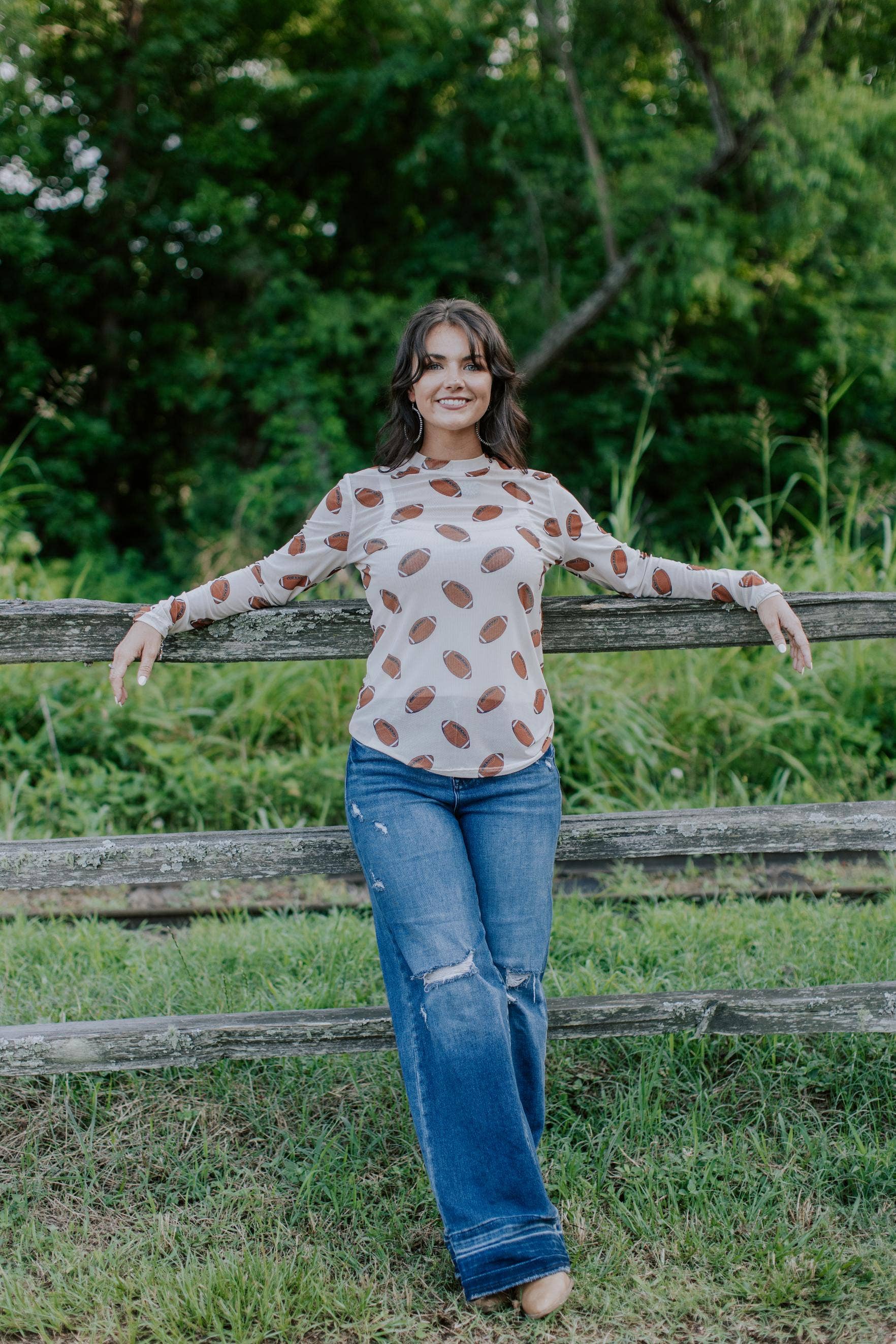 Get ready for game day with the Football Mesh Top This women's knit top is designed with a mesh fabric and features long sleeves for a sporty look. It's perfect for cheering on your favorite team.