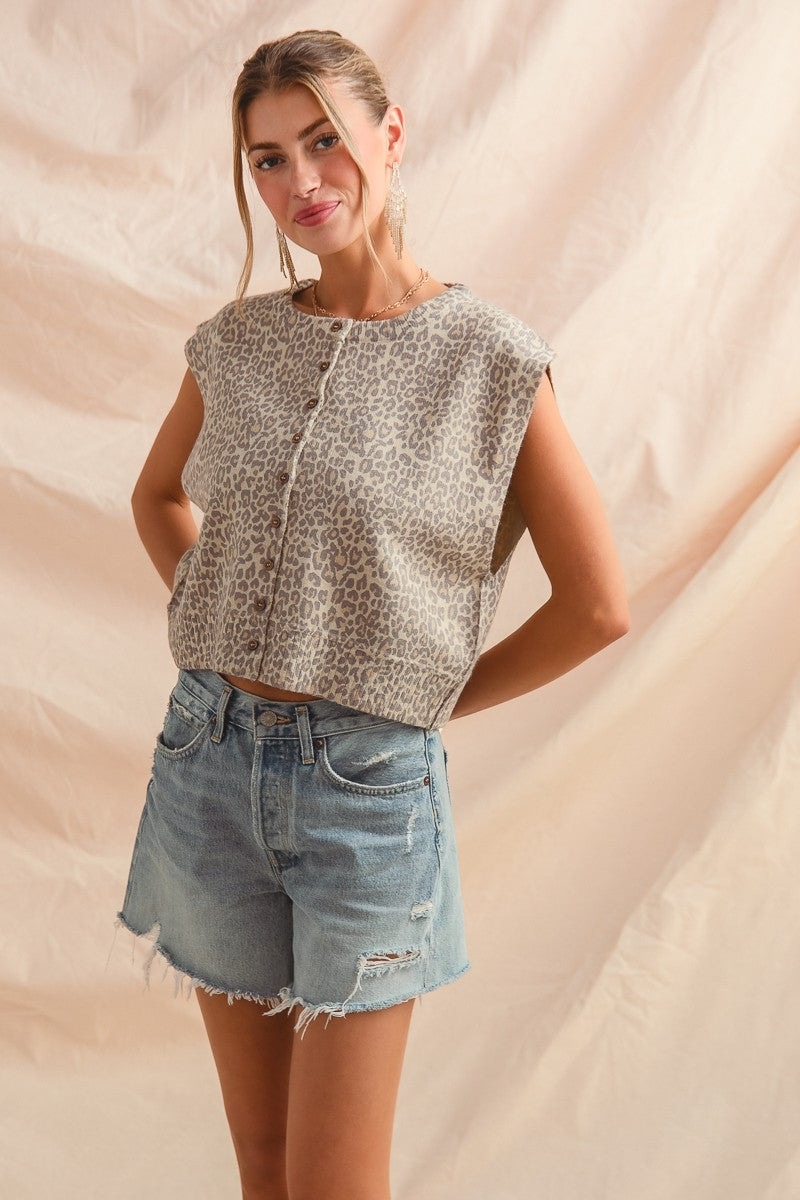 Vintage Leopard Print Button Front Vest Top