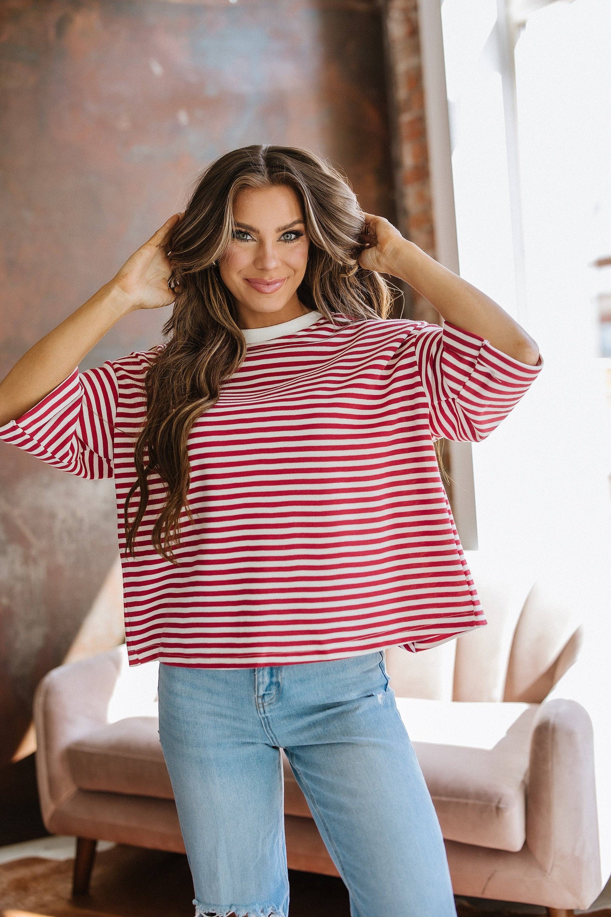 Make a statement with the Wrenlee Striped Tie Back Top. This stylish top features a unique tie back design that adds a touch of flair to any outfit. The stripes give it a classic, yet modern look that is perfect for any occasion. Upgrade your wardrobe with this must-have piece!