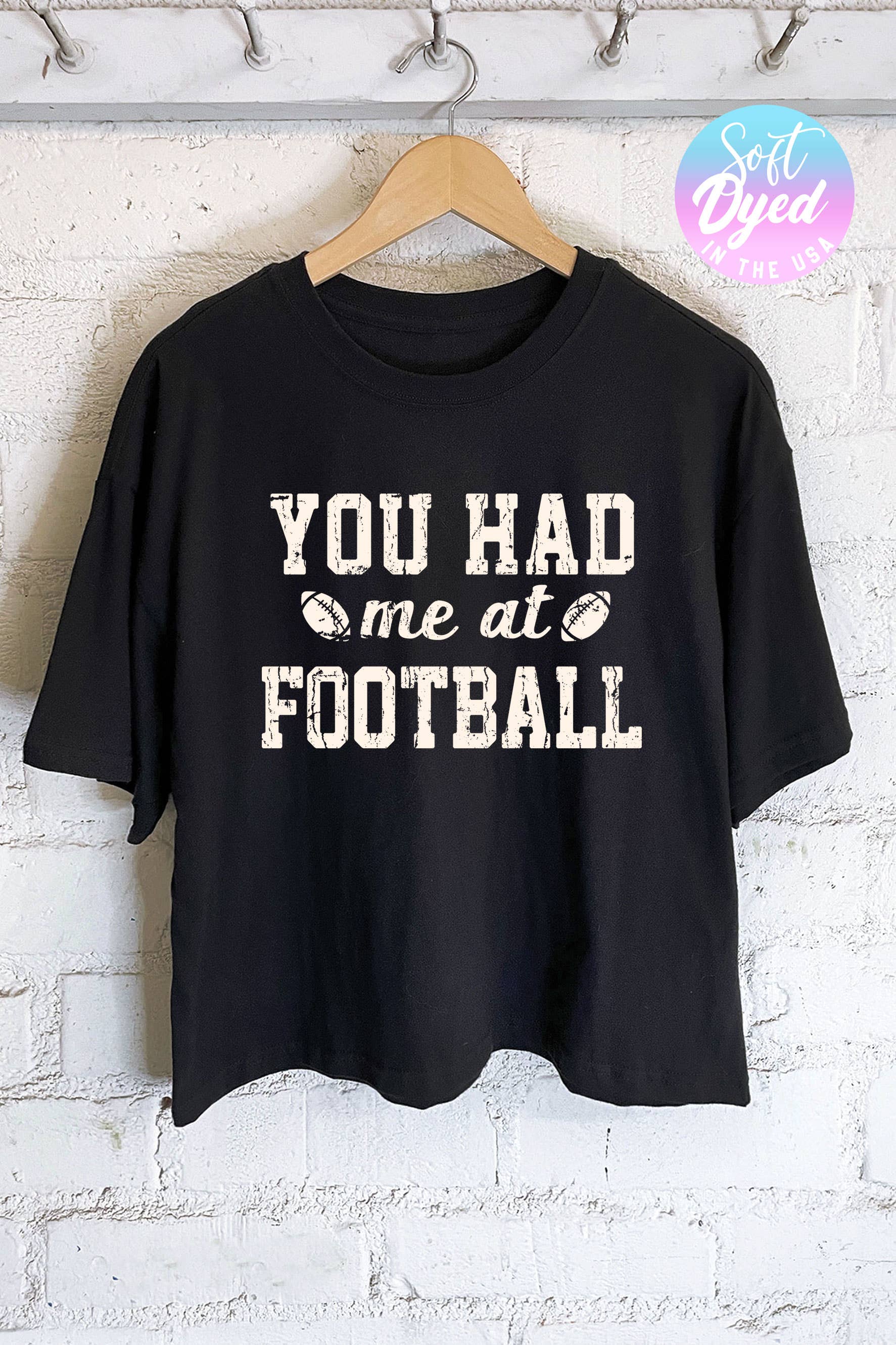 YOU HAD ME AT FOOTBALL LONG CROP TOP